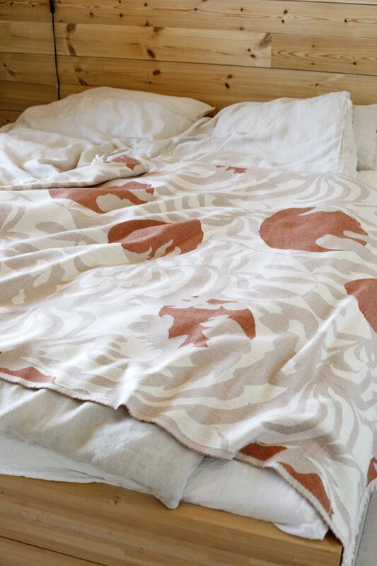 The Kuutamo blanket by Lapuan Kankurit is made of merino wool and cotton blend that feels luxurious and soft against the skin. Designed by Saara Odele, the pattern in the blanket is inspired by tropical nights in late summer when the forest filters the moon’s warm light – “kuutamo” means moonlight in Finnish. The sweet blanket is perfect to warm up chilly autumn evenings but also works well as a picnic blanket on warm summer days.