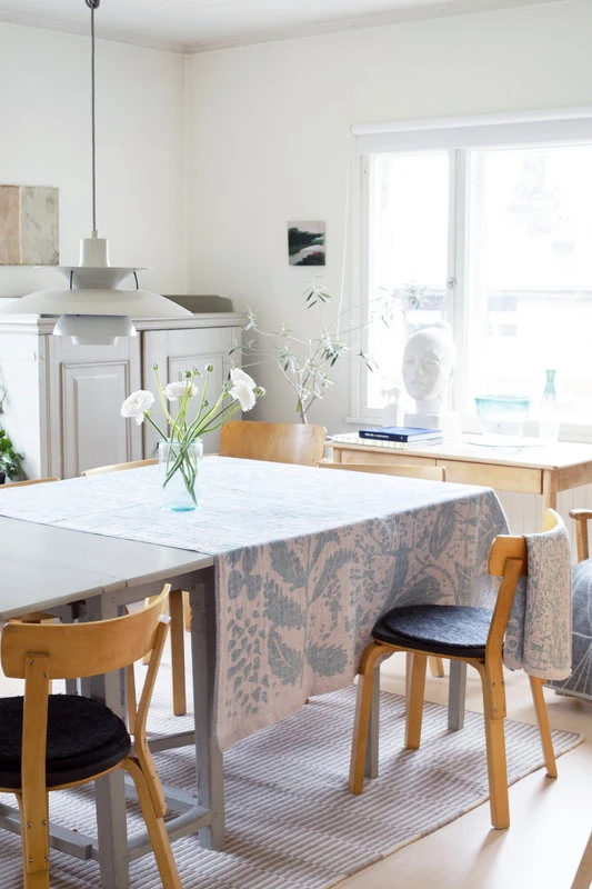 The Villiyrtit table cloth, designed by Matti Pikkujämsä for Lapuan Kankurit, is adorned with a rich, flowing pattern showcasing the delicacies of Finnish nature – “villiyrtit” is Finnish for wild herbs. The pattern is mirrored on the other side in opposite colours. The multifunctional linen cloth completes the look of table settings as a beautiful tablecloth but also works as a thin blanket in the summer heat, a curtain at the window or a picnic mat in the park. The table cloth has been woven in Finland at the own weaving mill of Lapuan Kankurit.