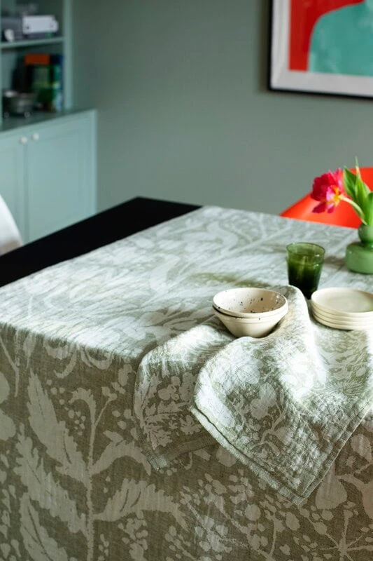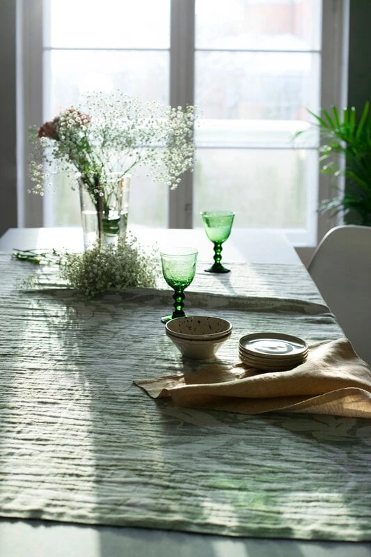 The Villiyrtit table cloth, designed by Matti Pikkujämsä for Lapuan Kankurit, is adorned with a rich, flowing pattern showcasing the delicacies of Finnish nature – “villiyrtit” is Finnish for wild herbs. The pattern is mirrored on the other side in opposite colours. The multifunctional linen cloth completes the look of table settings as a beautiful tablecloth, but also works as a thin blanket in the summer heat, a curtain at the window or a picnic mat in the park. The table cloth has been woven in Finland at the own weaving mill of Lapuan Kankurit.
