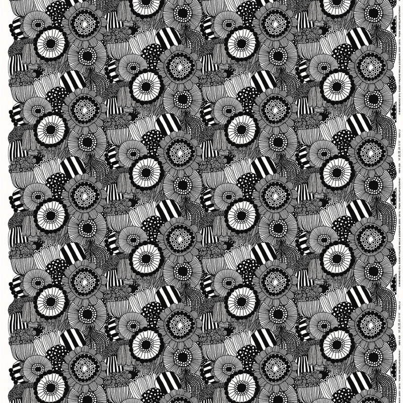 Marimekko’s Pieni Siirtolapuutarha fabric features Maija Louekari’s cheerful pattern that depicts beautiful summer flowers growing in allotment gardens. The fabric is heavyweight cotton, and its repeat measures 62 cm.