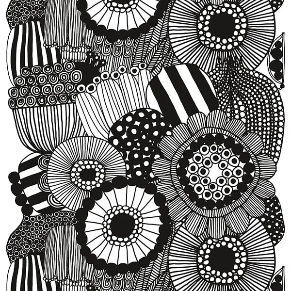 Marimekko’s Siirtolapuutarha fabric features Maija Louekari’s cheerful pattern that depicts beautiful summer flowers growing in allotment gardens. The monochrome fabric is made of 100% heavyweight cotton, and its repeat measures 98 cm.