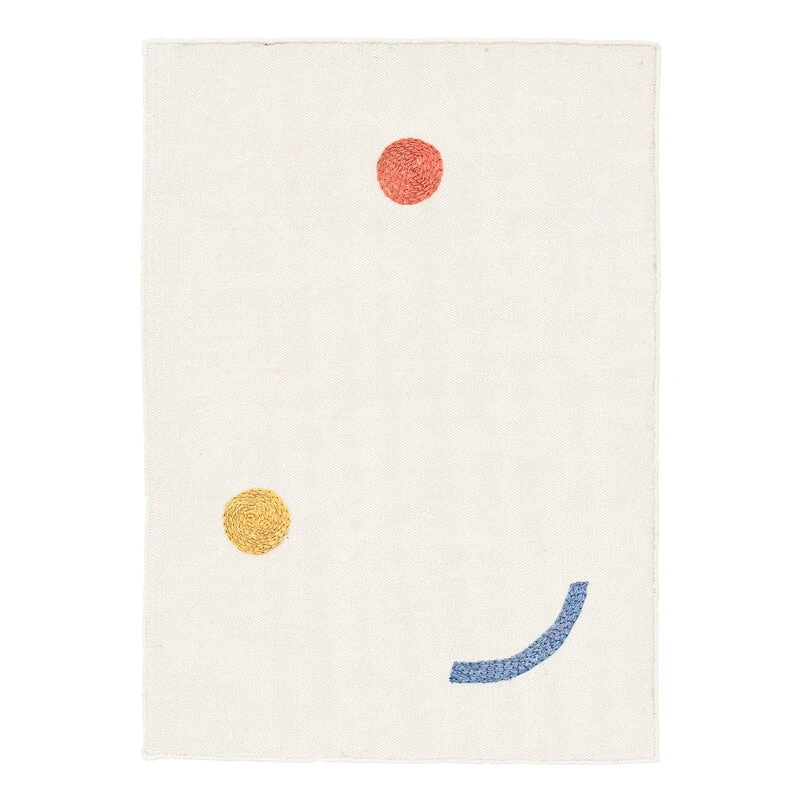 The Hymiö rug, designed by Tomi Leppänen for MUM’s, is adorned with an abstract pattern based on typographical elements. Part of Leppänen’s Typewriter collection, the rug is inspired by Bauhaus and specifically the work of textile designer Anni Albers, who experimented in the 1930s with using her typewriter as a tool for making patterns. The minimalist pattern of Hymiö (Finnish for “smiley” or “emoticon”) is also created using the full stops and dashes of a typewriter.