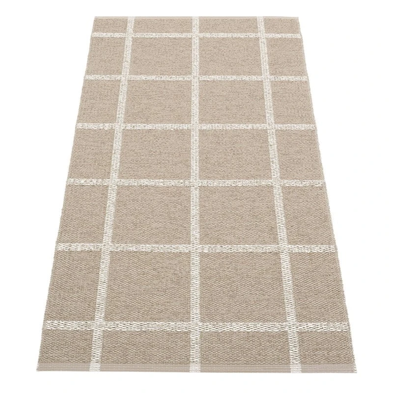 The Ada rug by the Swedish Pappelina is decorated with a metallic grid pattern. The rug’s edges are reinforced and welded, making them extremely durable.
