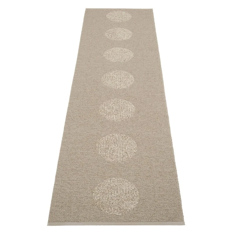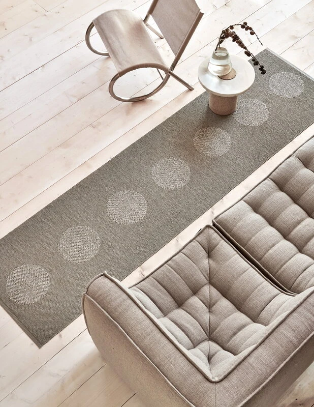 Pappelina’s Vera 2.0 rug is patterned by a row of large dots, adding a simple yet bold flair and a gentle metallic sheen to any decor. A two-sided design equals double the fun: you can flip the carpet over when you feel like it’s time for a new colour. The rug’s edges are reinforced and welded for extra durability, and you can wash the rug by hand or in a washing machine.