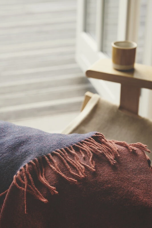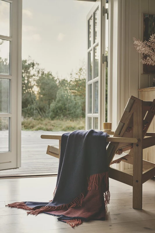 The Franja throw by the Danish textile company Silkeborg Uldspinderi charms with its delicious colours and lovely feel. The two-faced blanket has different colours on both sides, and, unlike in most blankets, the fringes appears on the long sides. Designed by Margrethe Odgaard, the Franja throw is made of a blend of fine wool and baby alpaca wool, making it incredibly warm, soft and light. The size of the throw is 170 x 140 cm.