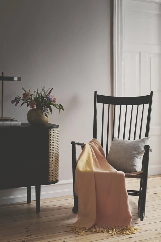 The Franja throw by the Danish textile company Silkeborg Uldspinderi charms with its delicious colours and lovely feel. The two-faced blanket has different colours on both sides, and, unlike in most blankets, the fringes appears on the long sides. Designed by Margrethe Odgaard, the Franja throw is made of a blend of fine wool and baby alpaca wool, making it incredibly warm, soft and light. The size of the throw is 170 x 140 cm.