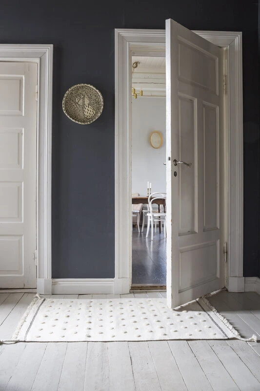 Tikau’s hand-woven Pallo rug features a fun, three-dimensional dotted pattern created by using a pile technique. Finished with relaxed fringes the woollen Pallo carpet introduces a soft and jovial mood to the décor – and it feels even softer than it looks! Made from natural wool, the carpet still has a protective coat of lanolin intact making it perfect for all spaces, including the hallway and bathroom. The Pallo carpet would also look stunning hung on the wall.