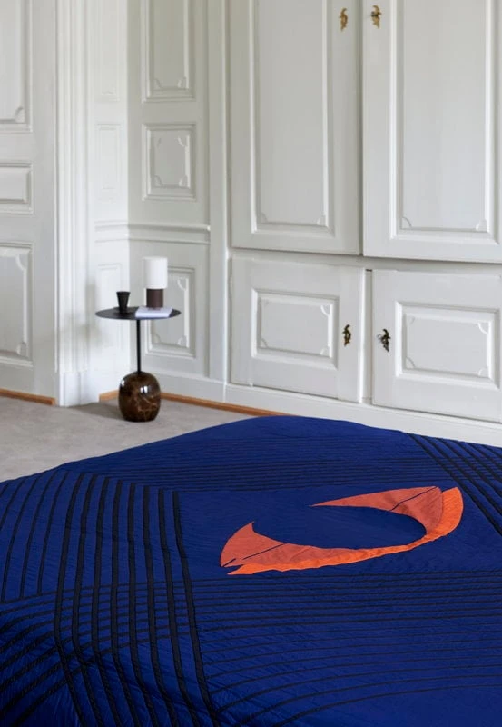 The Eye bedspread by &Tradition is a true eye-catcher of the bedroom. Designed by All the Way to Paris, the double-size bedspread is adorned with a large eye pattern circled by geometric lines. The soft, padded bedspread is made of organic cotton, and its distinctive pattern has been quilted by hand.
