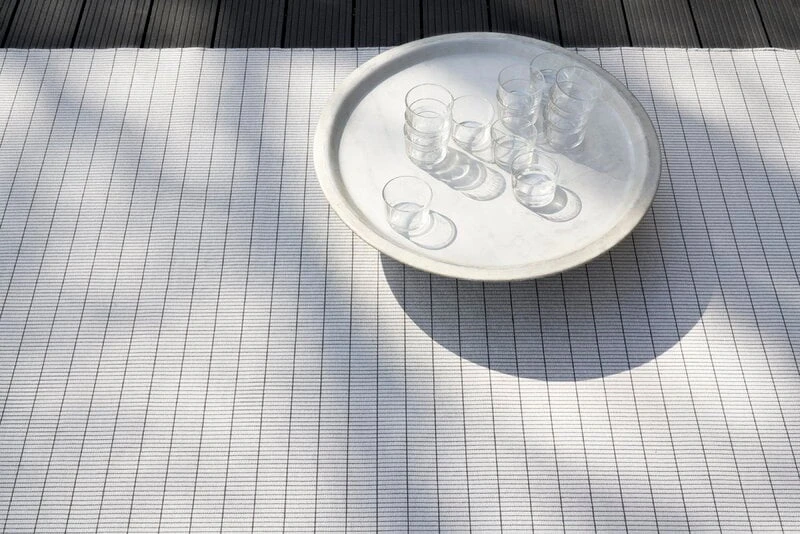 The Line In-Out rug by Woodnotes is made of moisture- and fade-resistant polypropylene, making it well-suited for kitchens and children’s rooms as well as balconies, patios and other outdoor areas. The Line rug also is also a great and practical outdoor rug for pool areas or beach houses, as polypropylene fibres defy chlorine and saltwater.